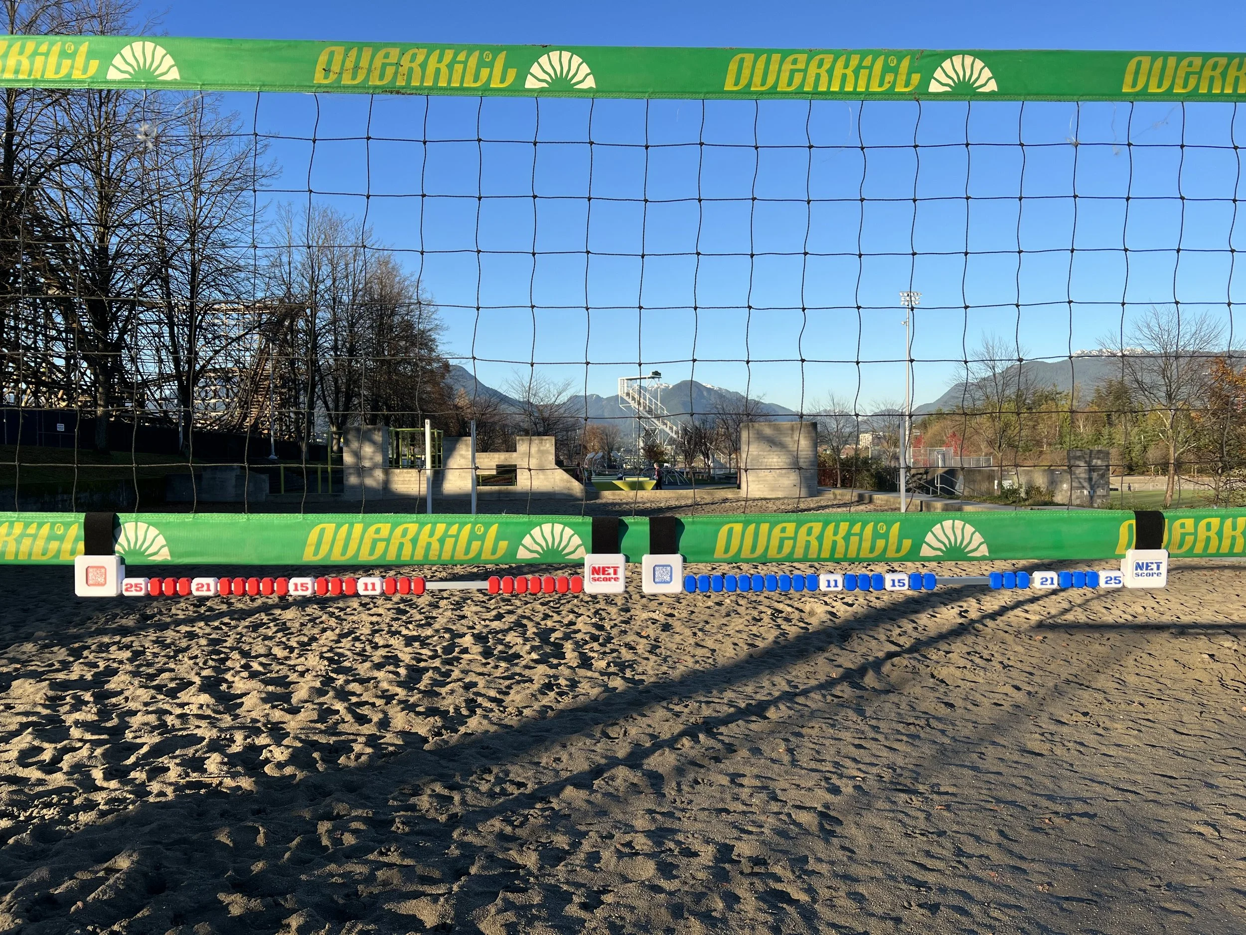 We separated the two teams into two units so they can be hung together at the centre of the net, or hung apart on either end of the net.